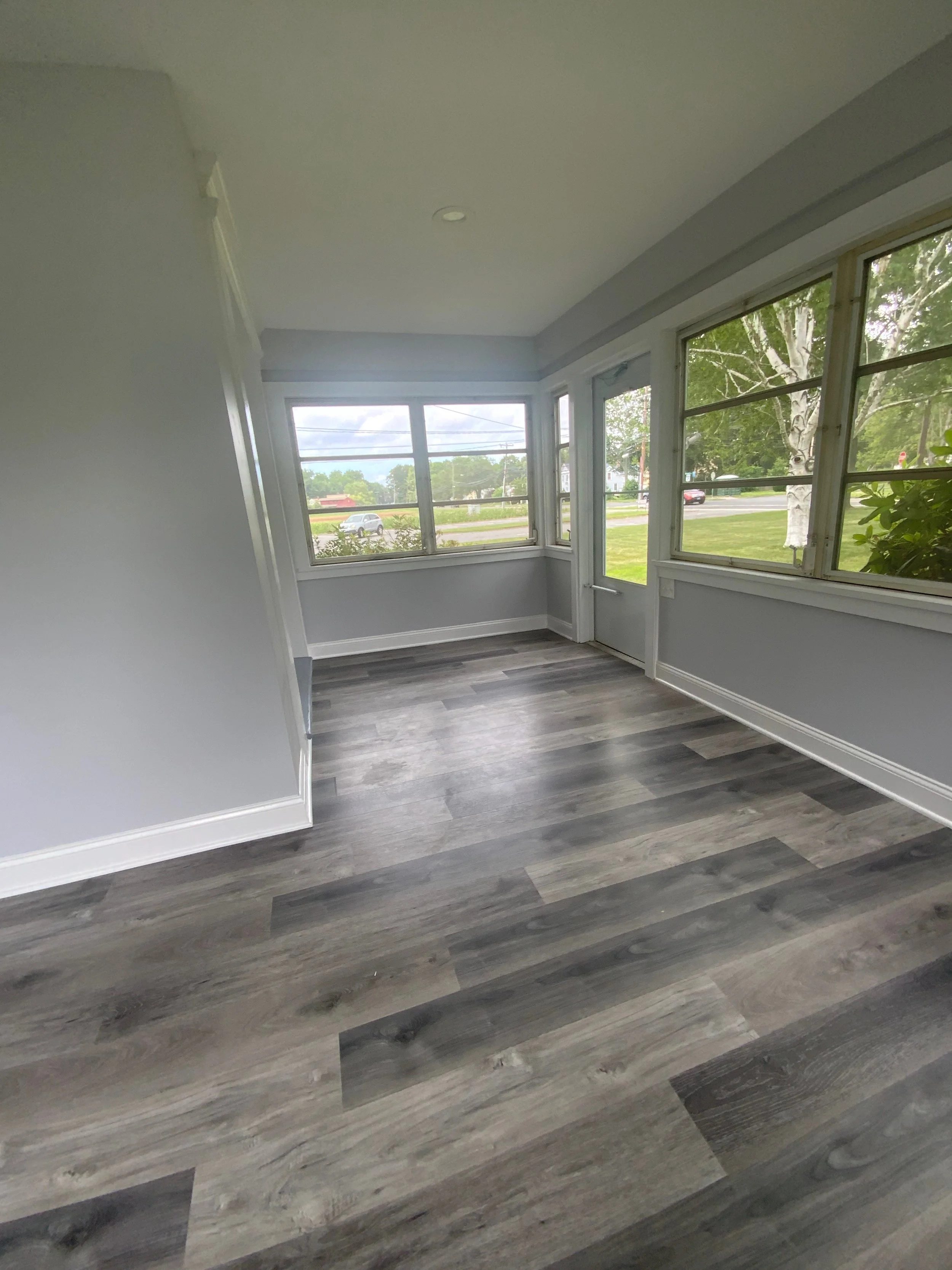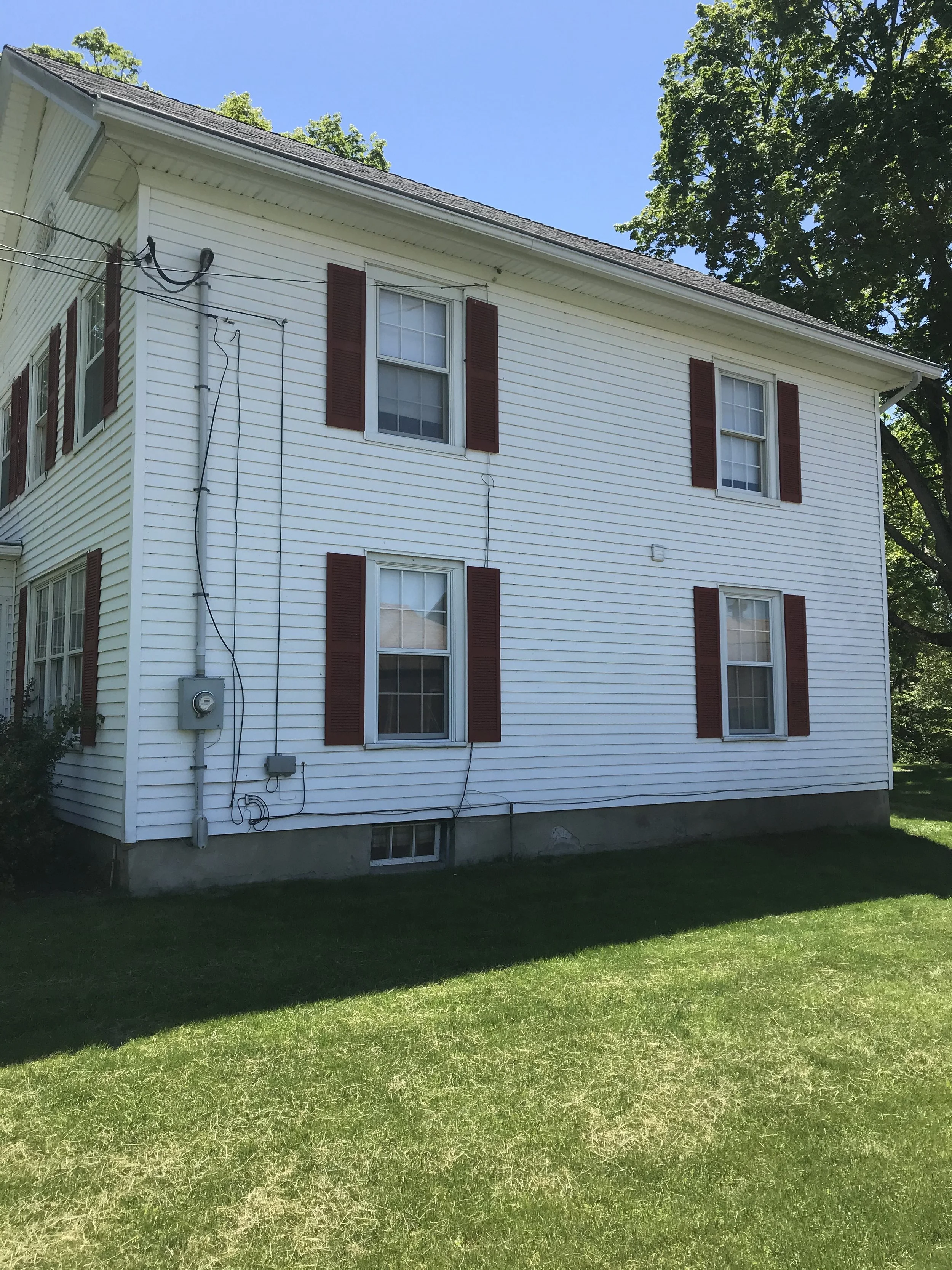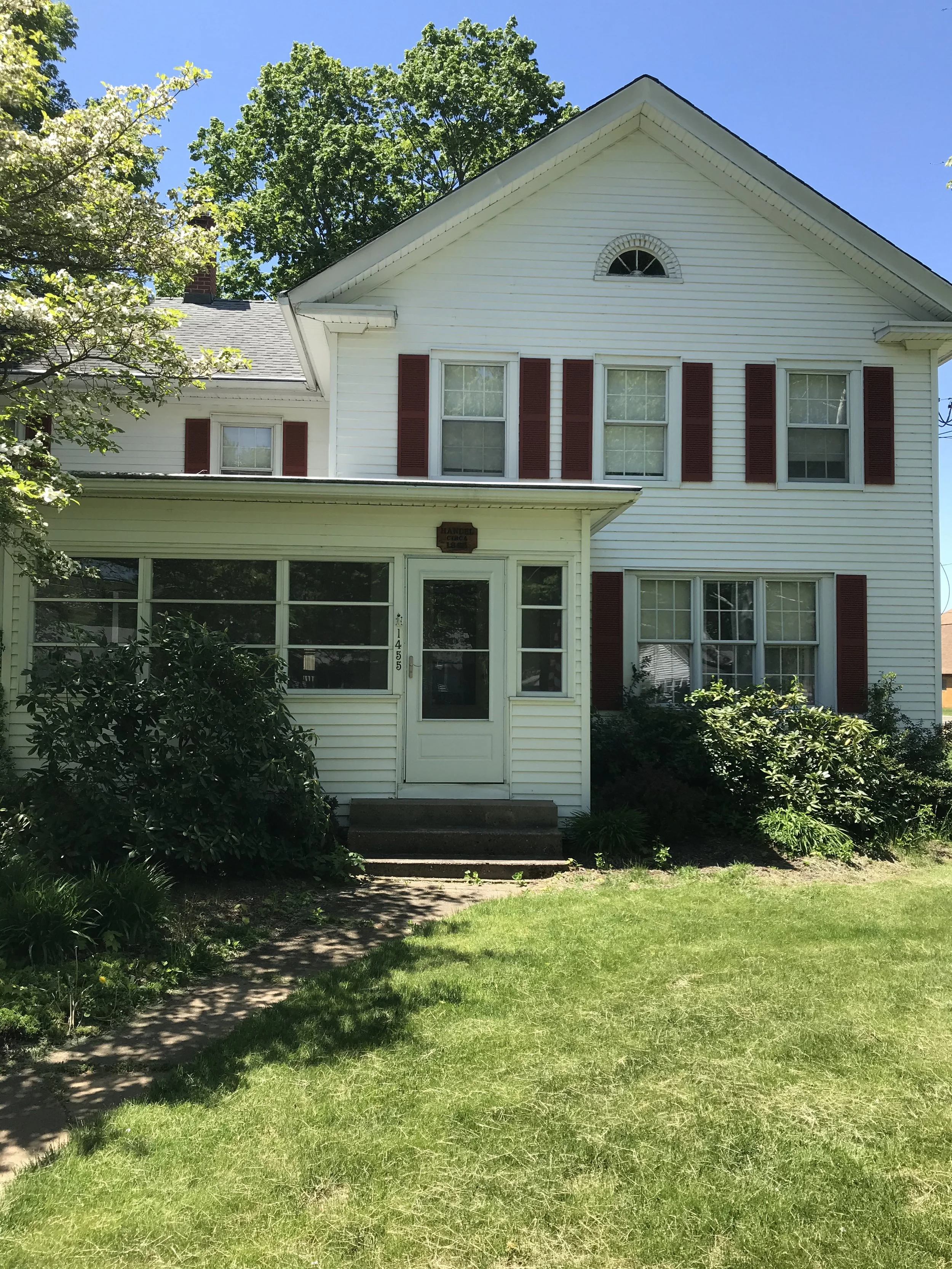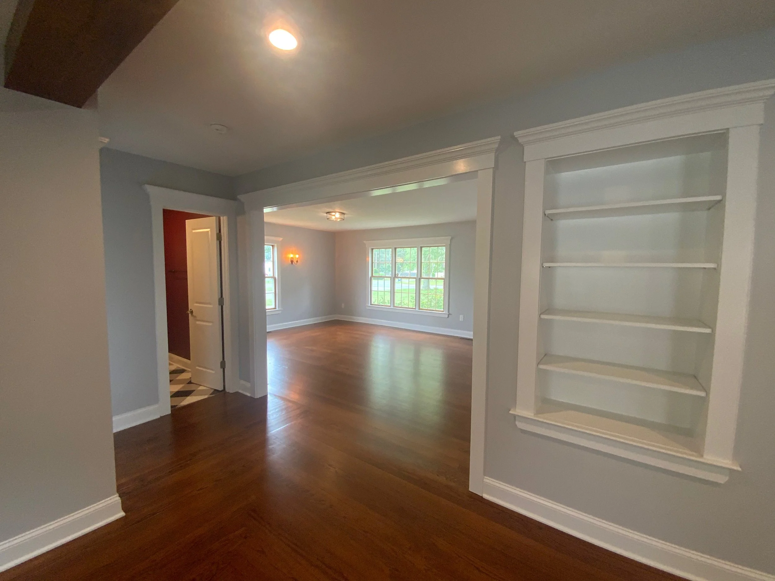 This project was a complete renovation of a 3,000 square foot farmhouse built in 1864. We demolished everything down to the bare framing. This included the removal of wiring, plumbing, heating, two chimneys and a set of stairs. This enabled us to gain a considerable amount of space in order to add a laundry room and master suite with a walk-in closet on the second floor. We were also able to give the homeowners an open floor plan on the first floor with all obstructions removed. Throughout the demolition process we were able to preserve the existing hardwood floors which helped maintain the original character of the home. The carpenters and painters worked to restore the original front entryway. Custom trim work tied everything together and helped to keep the farmhouse feel. The homeowners were crucial in their decision making throughout the project, especially with the designs in the kitchen and bathrooms. The spacious kitchen now has all the modern conveniences offered today as well as an open flow into the living room with the beautiful new gas fireplace and the family room. (Scroll to see the complete renovation & before photos.)