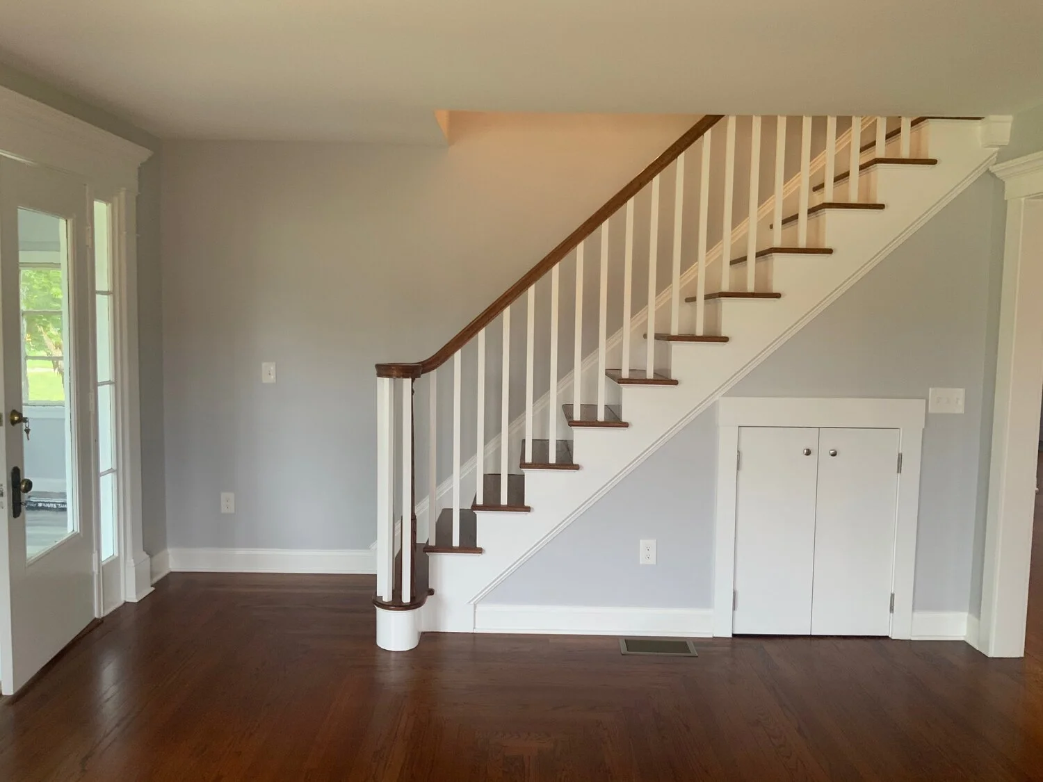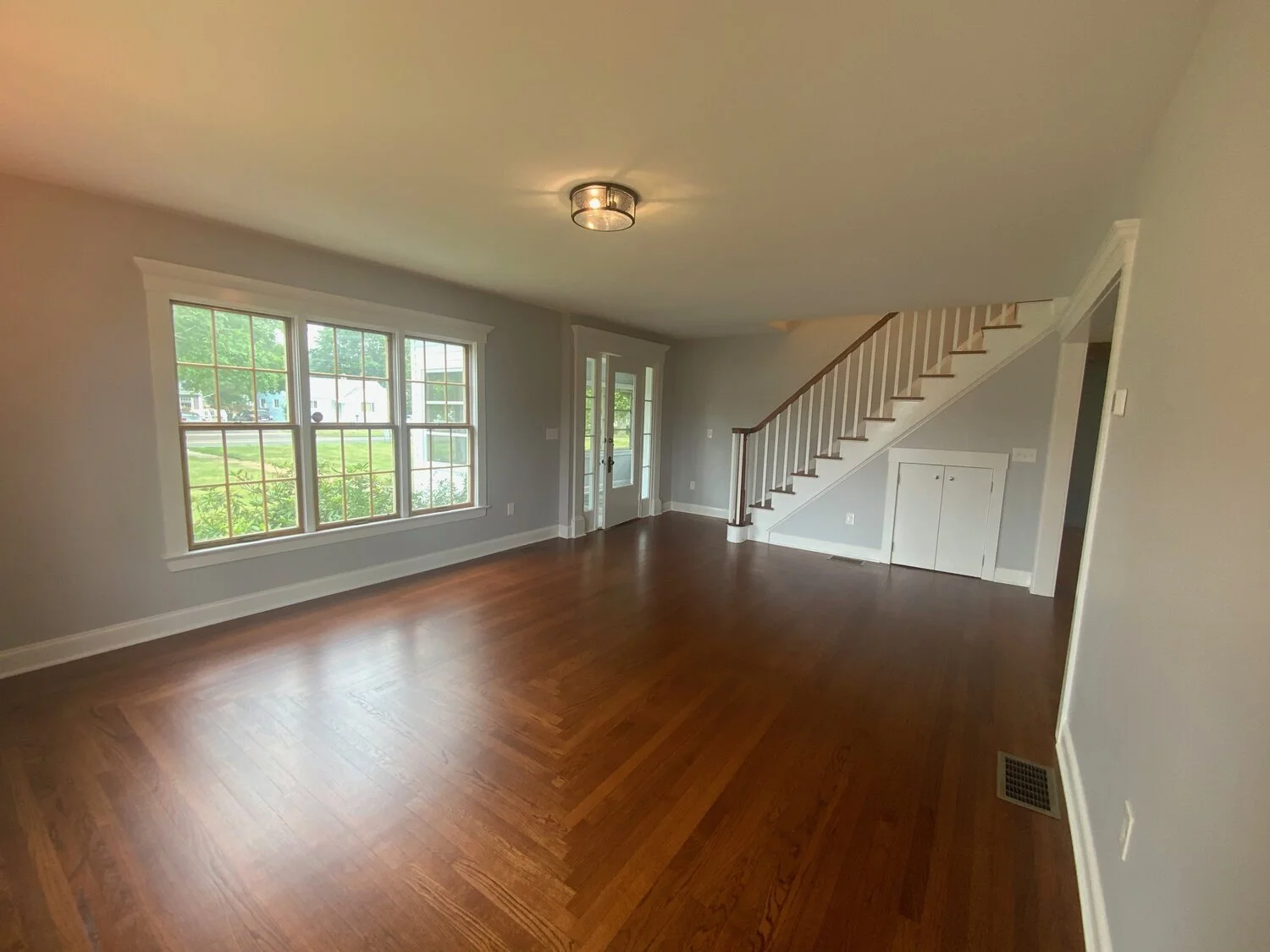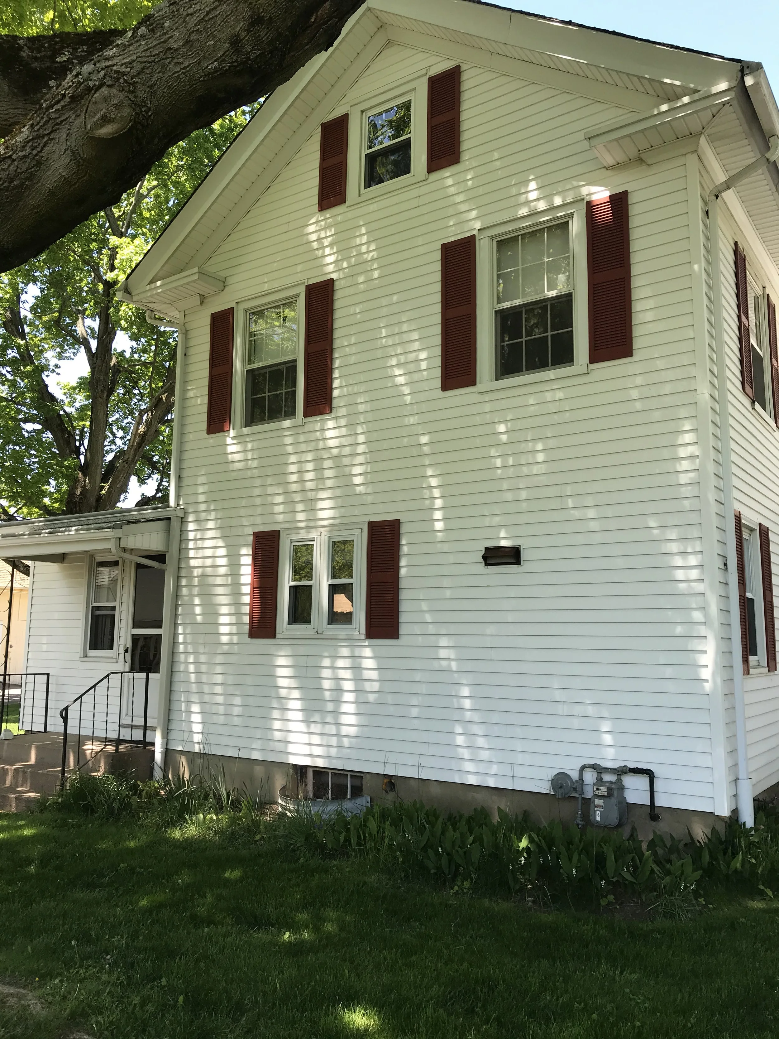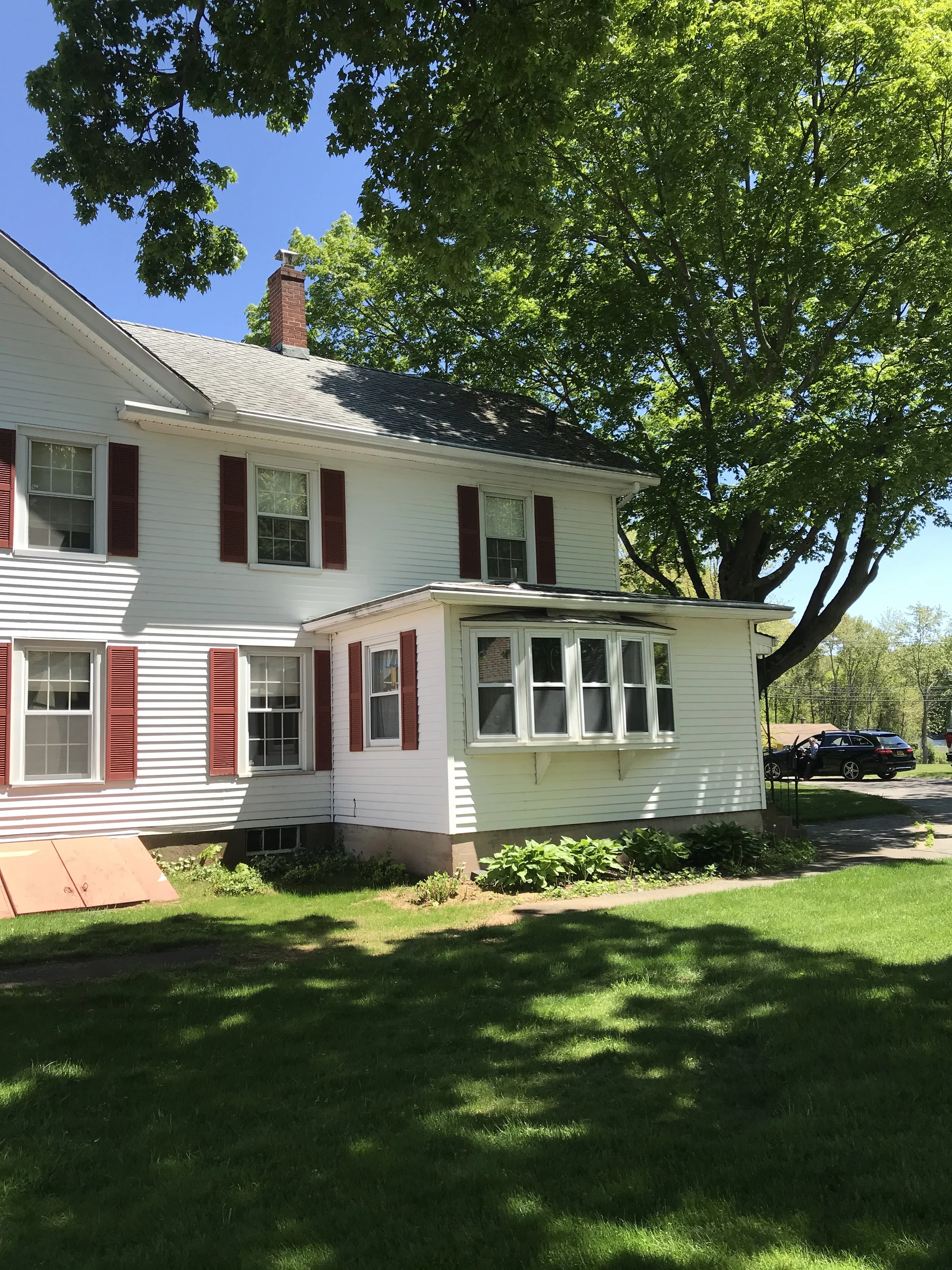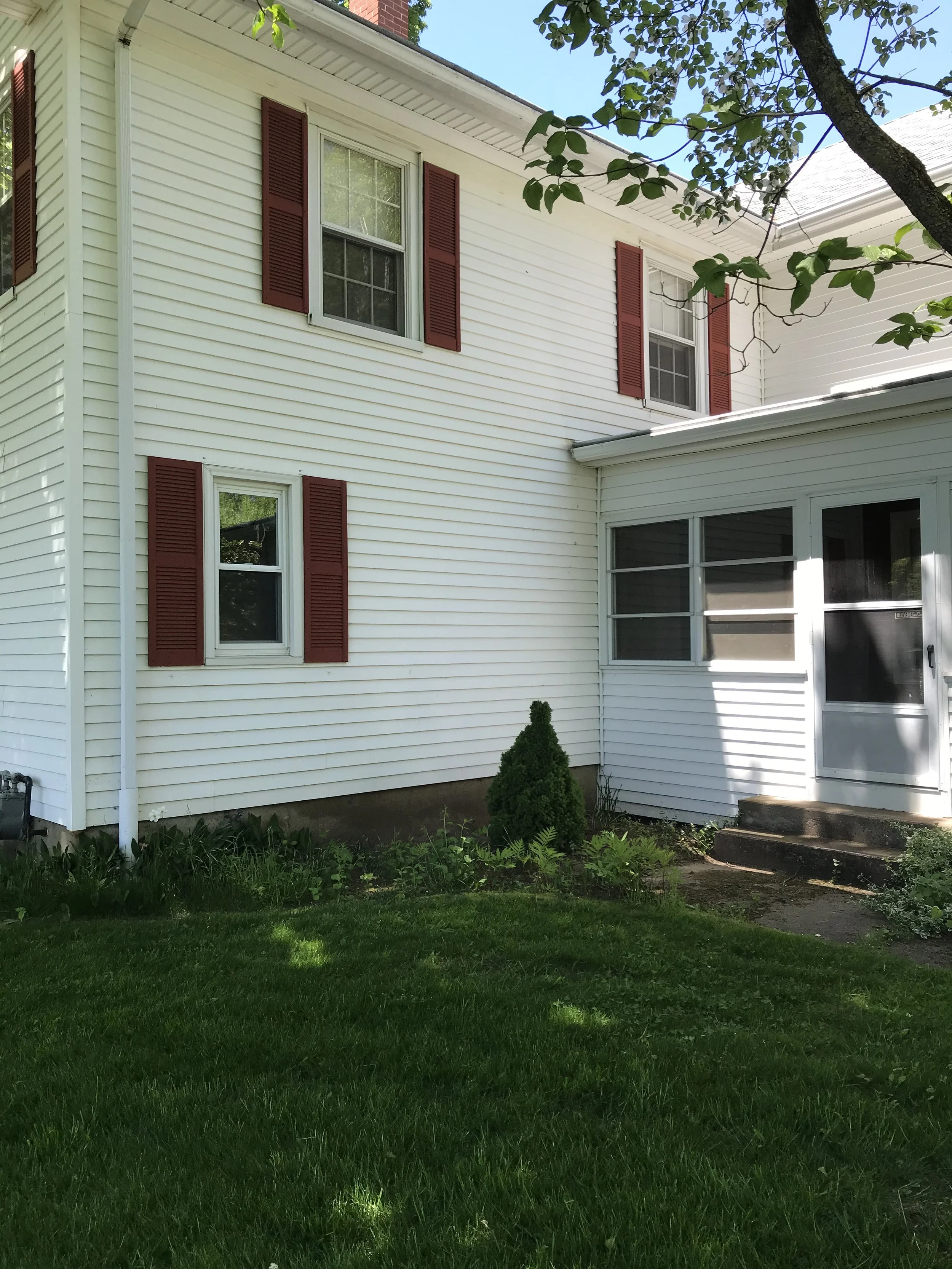 This project was a complete renovation of a 3,000 square foot farmhouse built in 1864. We demolished everything down to the bare framing. This included the removal of wiring, plumbing, heating, two chimneys and a set of stairs. This enabled us to gain a considerable amount of space in order to add a laundry room and master suite with a walk-in closet on the second floor. We were also able to give the homeowners an open floor plan on the first floor with all obstructions removed. Throughout the demolition process we were able to preserve the existing hardwood floors which helped maintain the original character of the home. The carpenters and painters worked to restore the original front entryway. Custom trim work tied everything together and helped to keep the farmhouse feel. The homeowners were crucial in their decision making throughout the project, especially with the designs in the kitchen and bathrooms. The spacious kitchen now has all the modern conveniences offered today as well as an open flow into the living room with the beautiful new gas fireplace and the family room. (Scroll to see the complete renovation & before photos.)