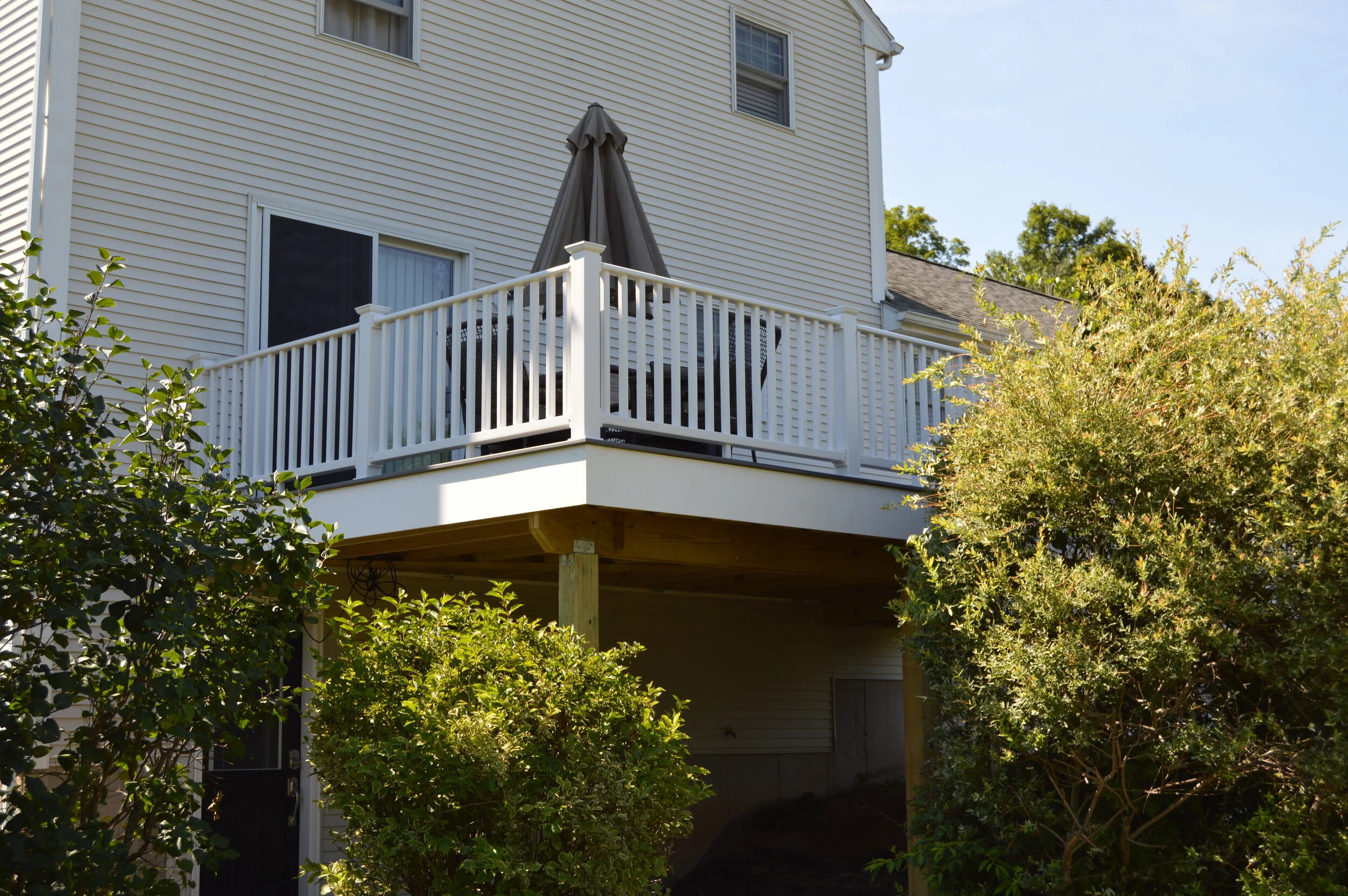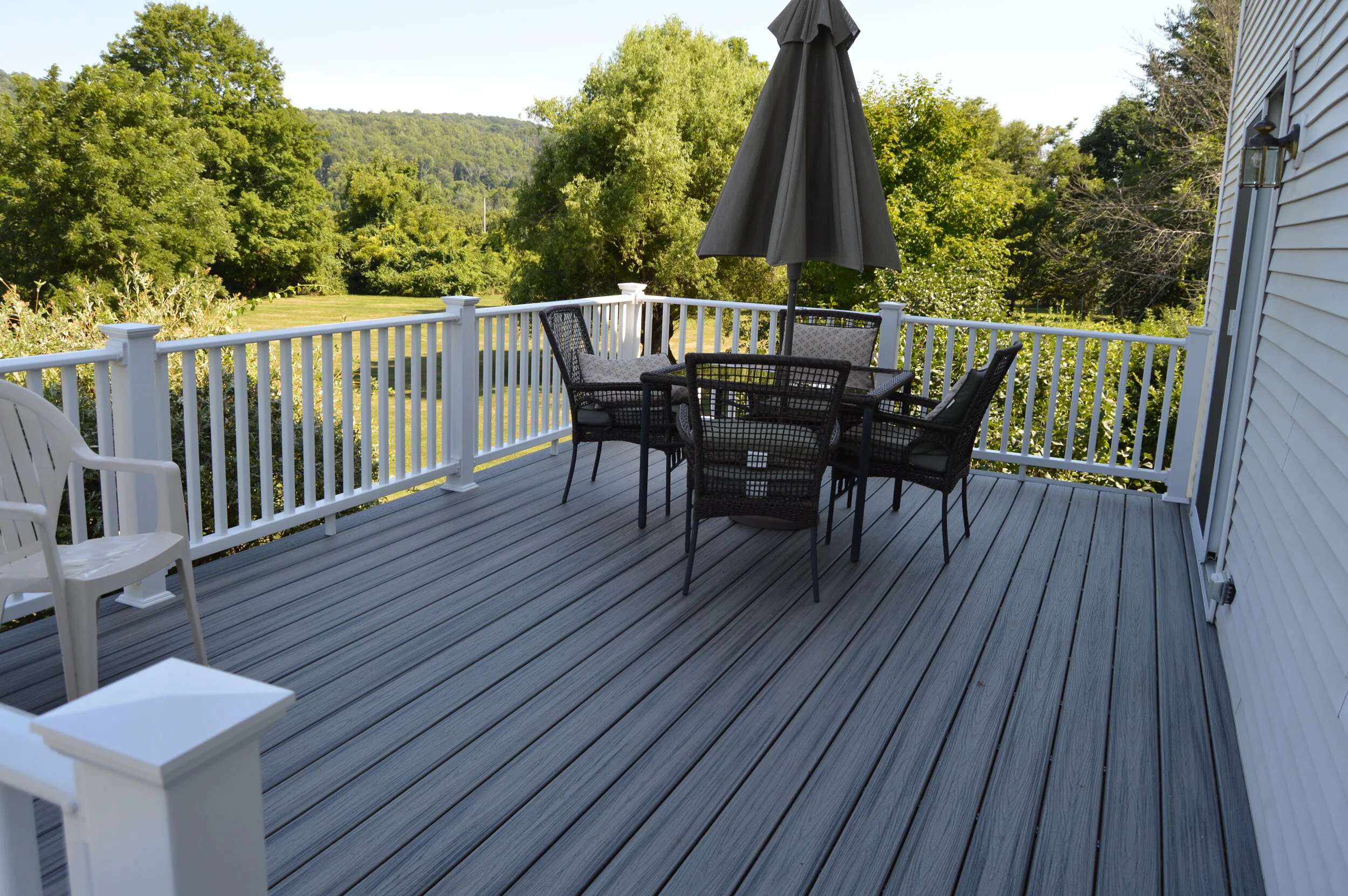 Deck Replacement - This is our second project for these homeowners. We removed their existing deck and replaced it with a new Trex Transcend deck with Azex trim and matching stairs coming down off the deck to the back yard.